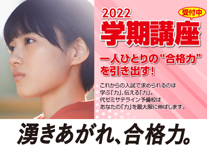 共通テストで課されるすべての科目に対応している大学入学共通テスト対策講座、志望校に狙いを定めた大学別入試対策講座、レベル別入試対策講座、高1・2生対象講座、入試対策小論文講座、特別選抜対策講座など圧倒的な講座数で、受験生のすべてのニーズに対応し、あなたを志望校合格へと導きます。