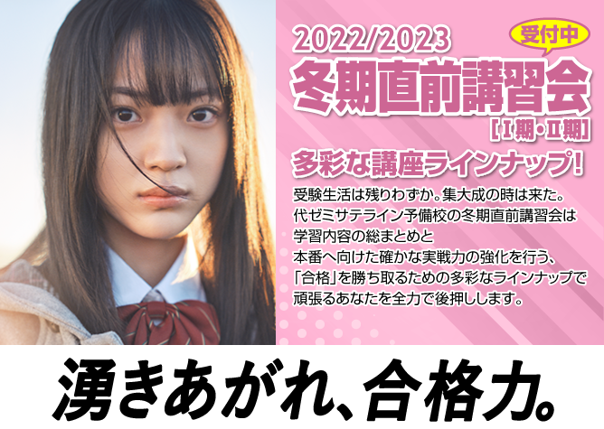 『講師の代ゼミ』と言われる受験界最強の講師陣が熱気溢れる講義を展開!! 「感動」と「発見」の講義にきっと衝撃を受けるはずです。